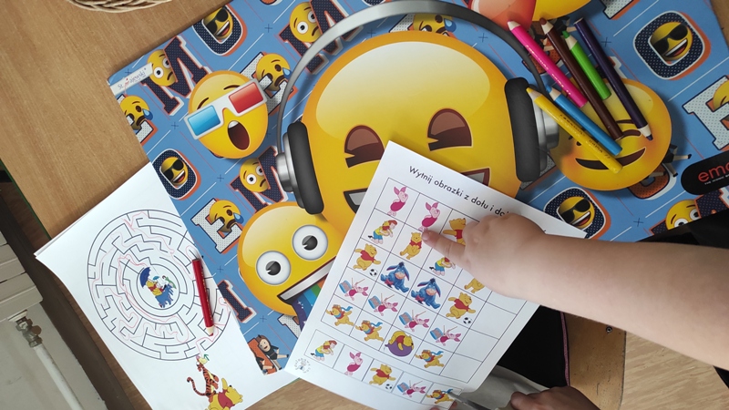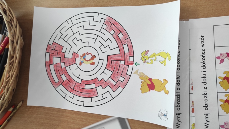 Następnie rozwiązywały rozsypanki literowe oraz labirynty z Kubusiem Puchatkiem ćwicząc koncentrację i spostrzegawczość. Na zakończenie zagraliśmy w grę karcianą "Ja mam. Kto ma?" Była to super zabawa pełna radości i zaangażowania uczestników.