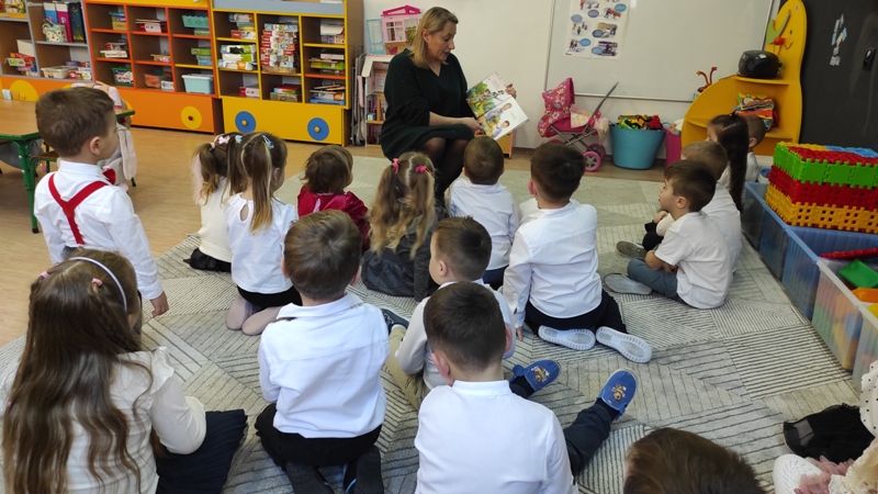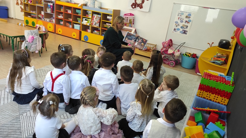 Po wysłuchaniu opowiadania dzieci udały się na uroczystą akademię pełną uśmiechów wzruszeń i serdecznej atmosfery, specjalnie przygotowaną przez przedszkolaków oraz uczniów Szkoły Podstawowej w Binczarowej.