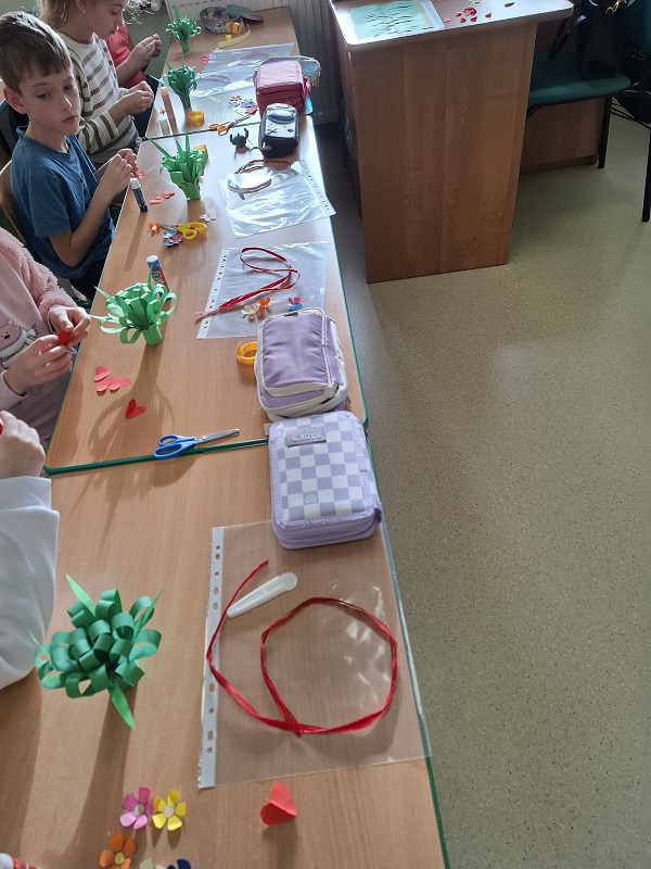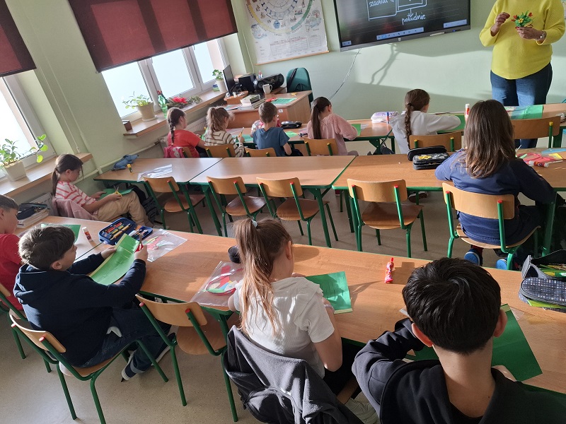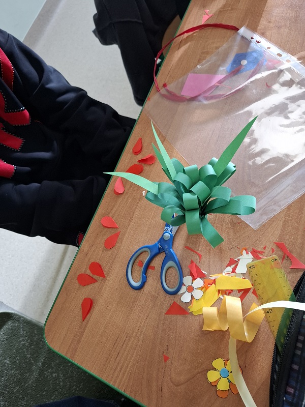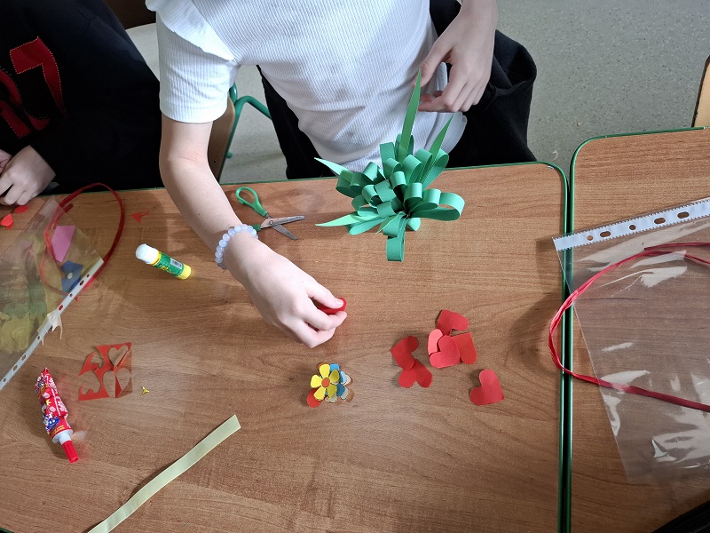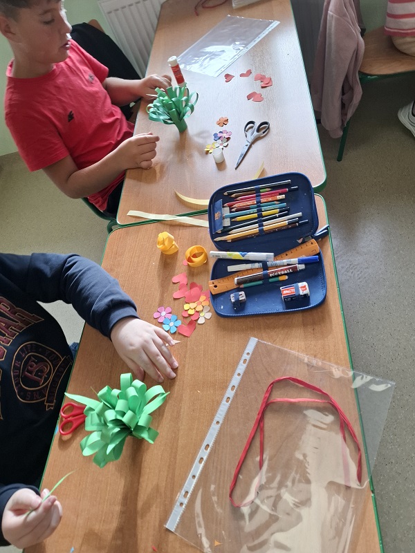 Na zakończenie spotkania uczniowie wykonali własnoręczne upominki – bukiety kwiatów. Kolorowe prace stały się pięknym symbolem wdzięczności, szacunku i miłości, które dzieci mogły podarować swoim babciom i dziadkom.