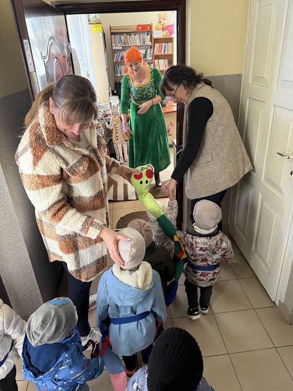 Dnia 5 listopada dzieci z Gminnego Samorządowego Żłobka we Florynce odwiedziły bibliotekę, aby świętować Dzień Postaci z Bajek. Na maluchy czekała wyjątkowa niespodzianka — powitała je Pani Fiona z bajki o Shreku.