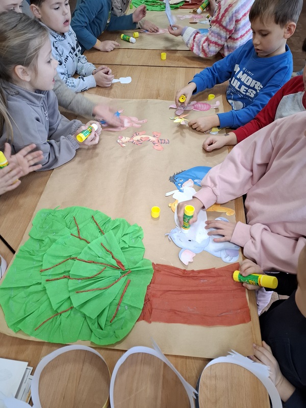 Na zakończenie wspólnie stworzyły makietę przedstawiającą przyjaciół w Stumilowym Lesie. Zajęcia przebiegły w radosnej i twórczej atmosferze.