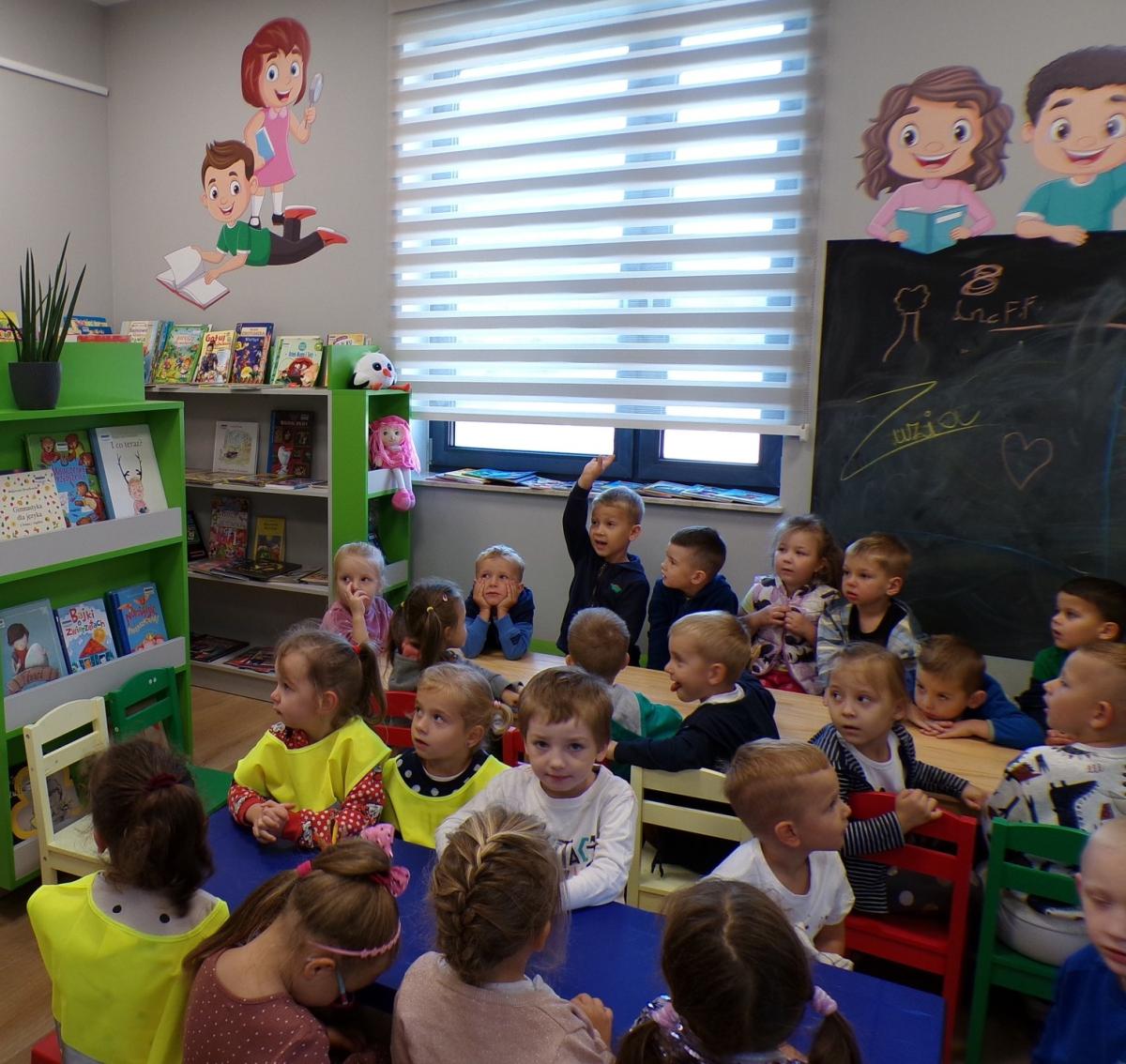 Grupa czterolatków z Przedszkola Niepublicznego im. Jana Pawła II w Krużlowej Wyżnej odwiedziła dziś bibliotekę w Krużlowej Niżnej. Dzieci poznały liska - bohatera serii książek "Przygody Fenka" oraz jego najbliższych przyjaciół. Na zajęciach dzieci wysuchały opowiadania, z którego dowiedziały się za co można a nawet trzeba dziękować, a kreatywna zabawa pomogła im zrozumieć, że dziękować można nie tylko za prezenty, ale w wielu innych sytuacjach i miejscach w których przebywamy.