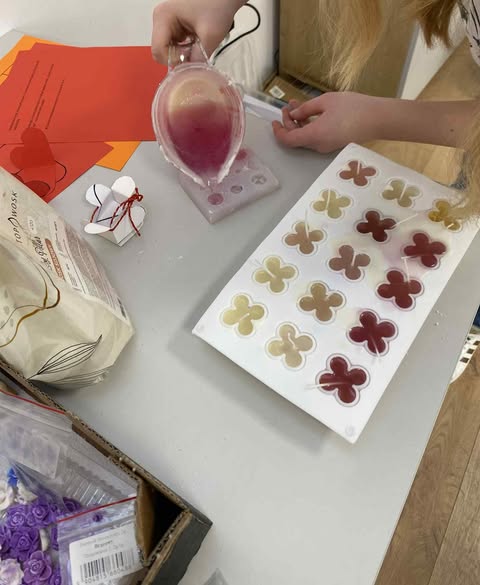 Jedne z zajęć inspirowane były zbliżającymi się Walentynkami. Dzieci własnoręcznie wykonały świece, które podarują bliskim osobom, a także przygotowały mini „love boxy” – wyjątkowe opakowania na swoje prezenty. Uczestnicy poznali również historię św. Walentego oraz dowiedzieli się, skąd wywodzi się to święto.