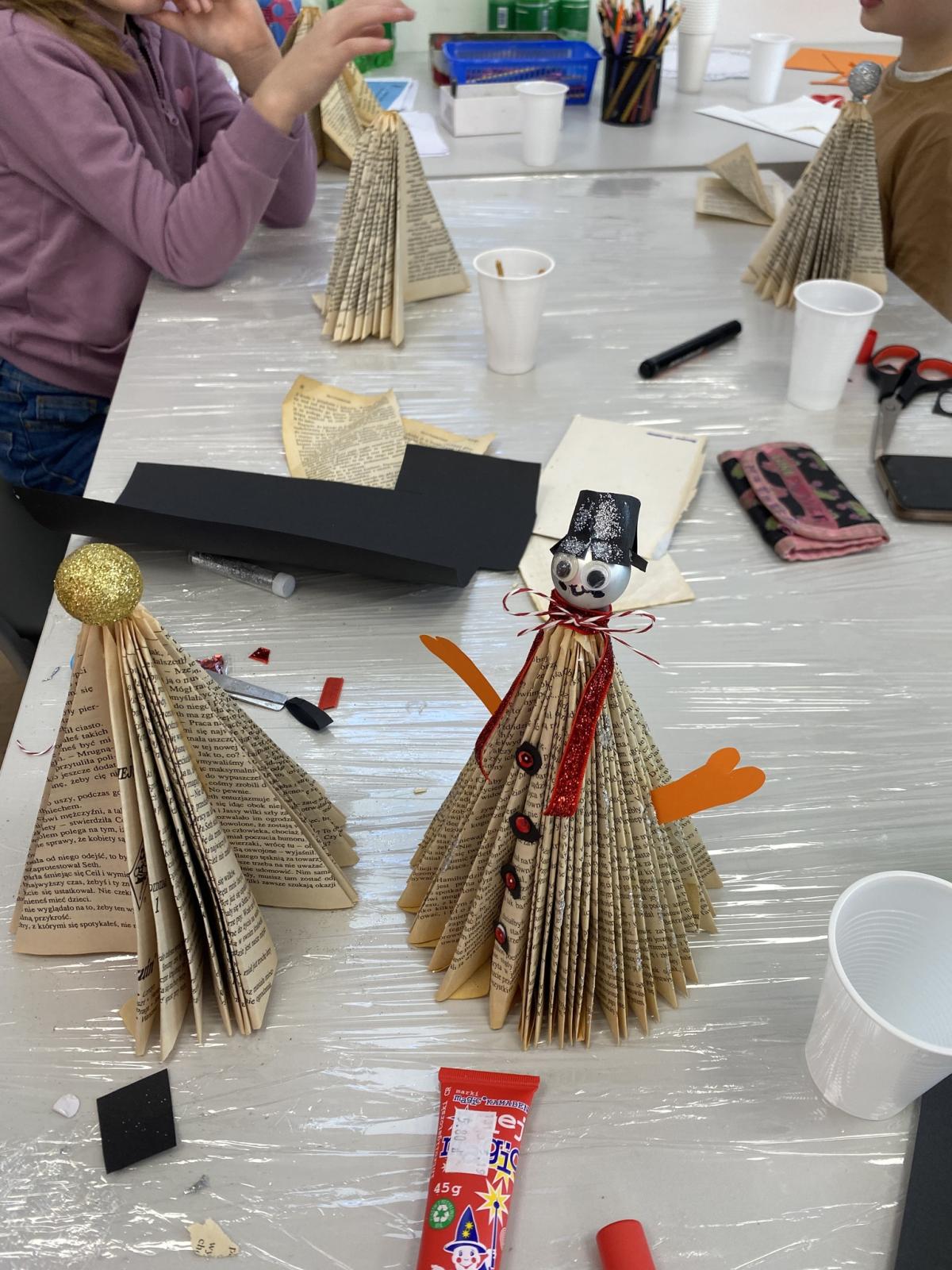 Było gwarno, twórczo i bardzo inspirująco.Na pierwszych zajęciach, pozostając w klimacie „Krainy Lodu”, dzieci stworzyły bałwanki, metodą origami. Wykorzystały do tego stare, nieaktualne pod względem treści książki znajdujące się w bibliotece, które w ten sposób zyskały drugie życie. Była to również próba zachęcenia osób stroniących od książek do obcowania ze słowem pisanym, choć w nieco inny sposób. Celem zajęć było także rozbudzenie w dzieciach kreatywności, pomysłowości oraz nieszablonowego myślenia. Uczestnicy zajęć z ogromnym zaangażowaniem brali udział w przygotowanych aktywnościach – nie brakowało uśmiechów, dobrej energii i radosnej atmosfery. Dzieci zmierzyły się z zagadkami bajkowo-literackimi oraz kalamburami, w których mogły wykazać się wiedzą i kreatywnością. Z zadaniami poradziły sobie znakomicie, a za każdą poprawną odpowiedź czekał drobny upominek.