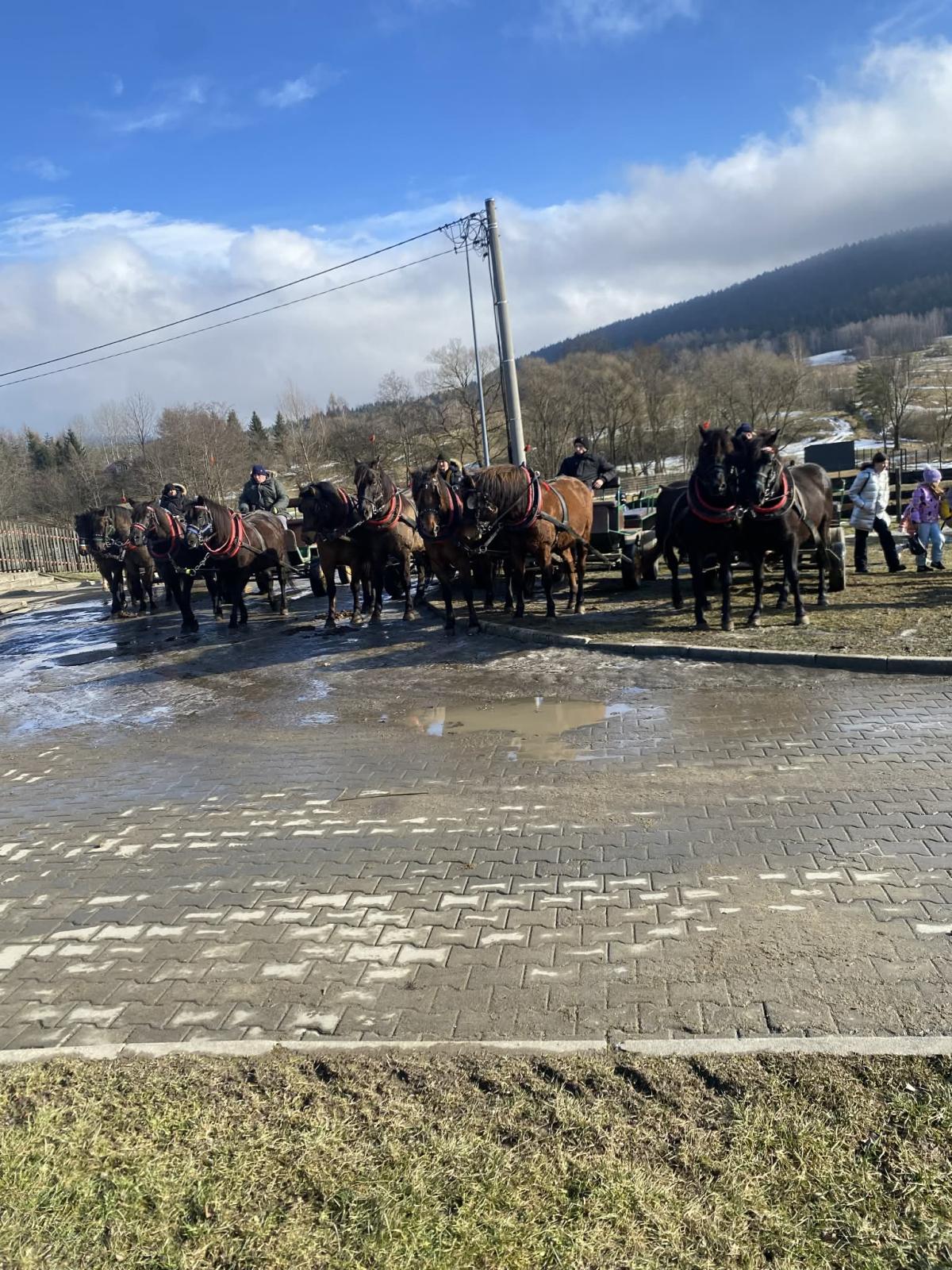 Nie zabrakło także aktywności sportowych – wspólnych wyjść na lodowisko oraz wyjazdu do Regietowa. Podczas wyprawy dzieci miały okazję podziwiać „Magiczną Krainę Łemków i Pogórzan” w trakcie przejażdżki bryczką zaprzęgniętą w konie huculskie. Po pełnej wrażeń podróży uczestnicy spotkali się w Karczmie Huculanka na wspólnym ognisku i pieczeniu kiełbasek.