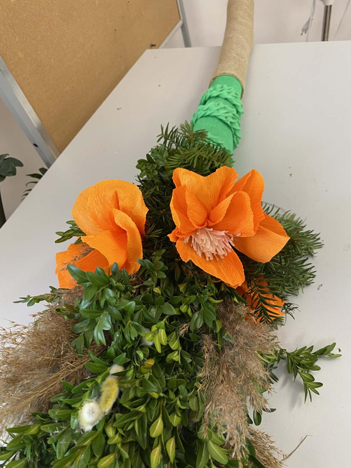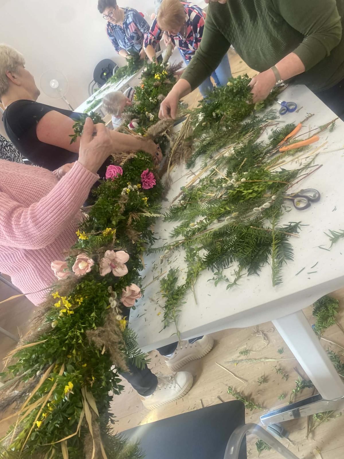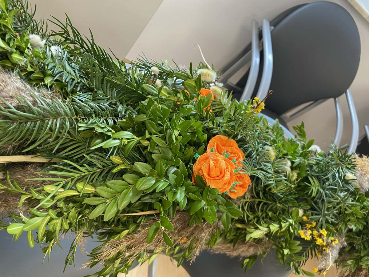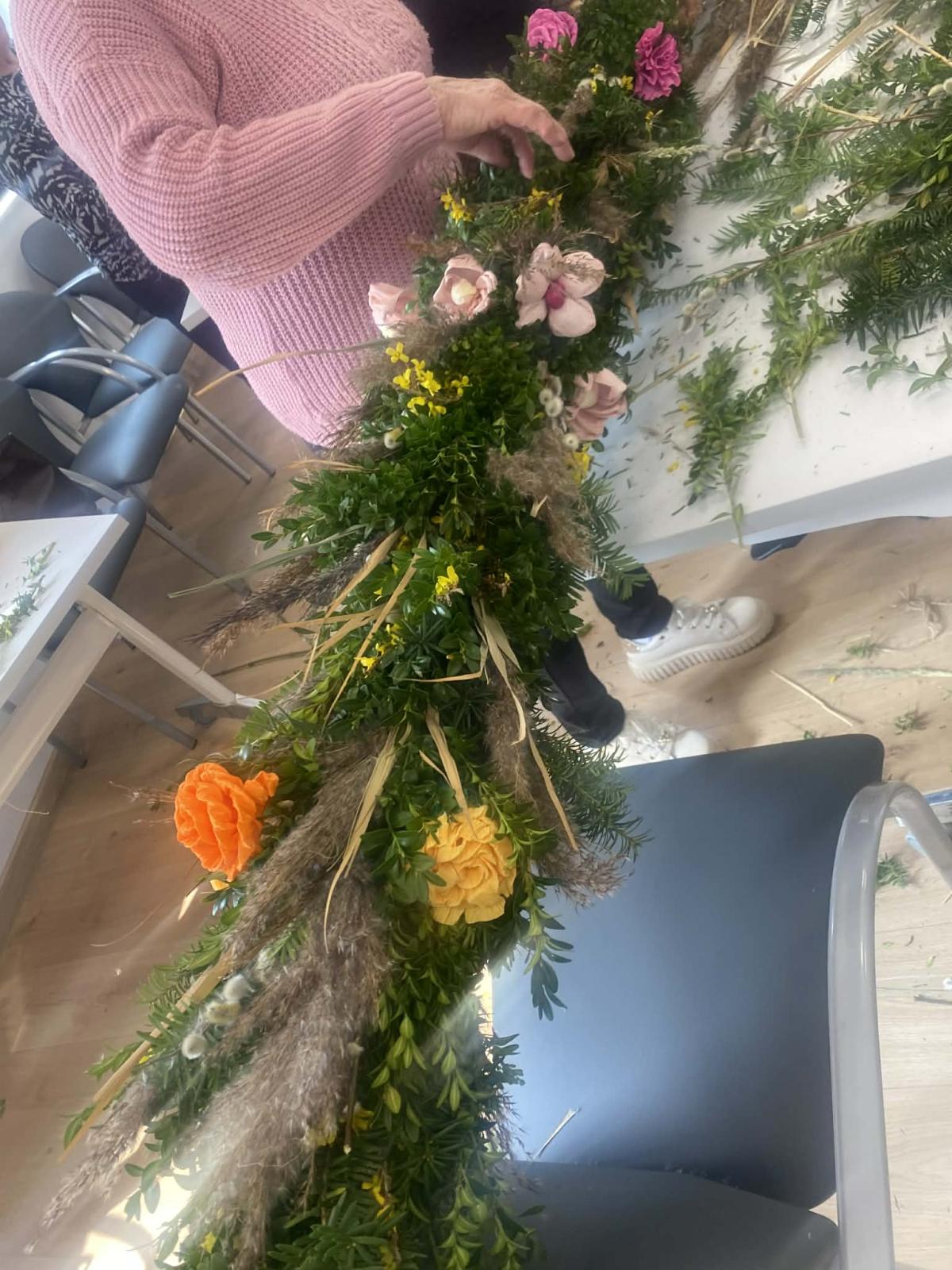 Po wielu konsultacjach oraz licznych godzinach pracy — przy tworzeniu kwiatów, zbieraniu bazi i zieleniny, a wreszcie przy samym pleceniu — udało się stworzyć wyjątkową, bardzo wysoką, tradycyjną palmę na Niedzielę Palmową. Seniorzy wykazali się ogromnym zaangażowaniem, dbając o to, by tradycji stało się zadość.