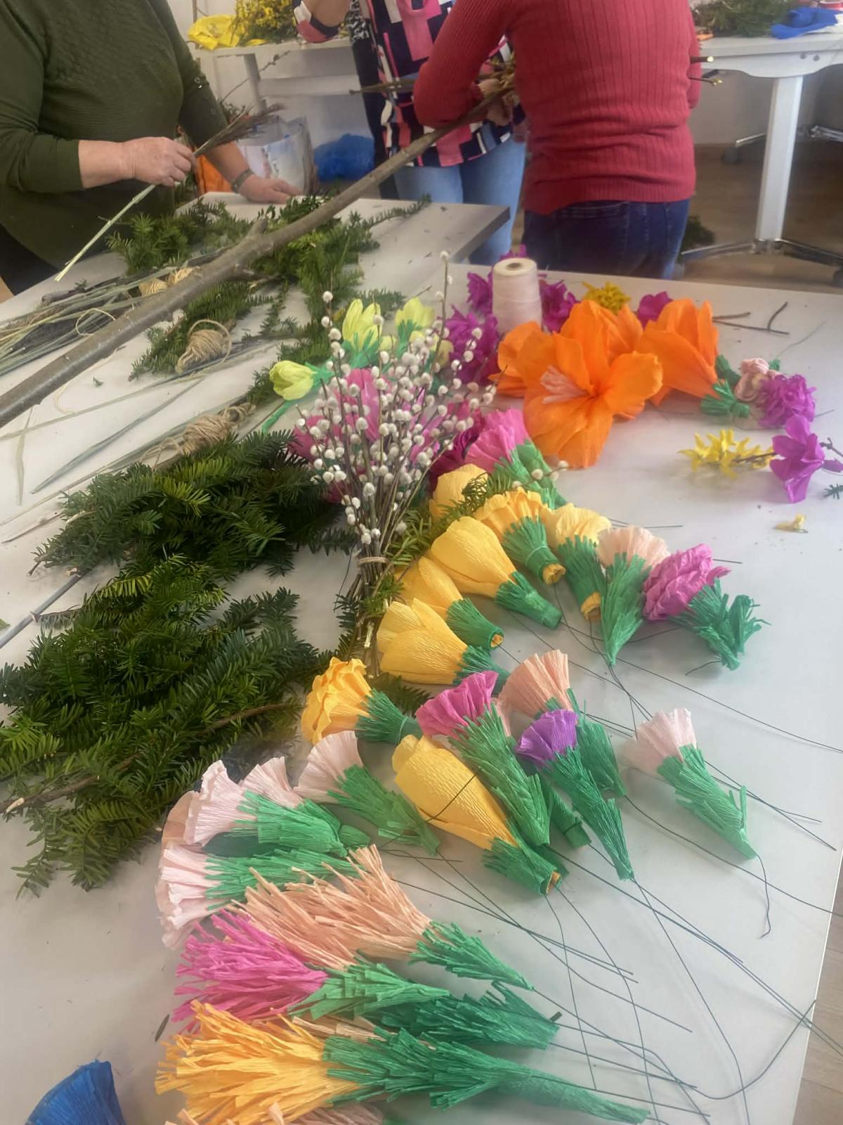 Już po raz kolejny w Bibliotece w Krużlowej Niżnej powstała piękna, kolorowa, tradycyjna Palma Wielkanocna. Tym razem seniorzy z dużym zaangażowaniem aktywnie włączyli się w jej przygotowanie, podtrzymując tradycje Niedzieli Palmowej.