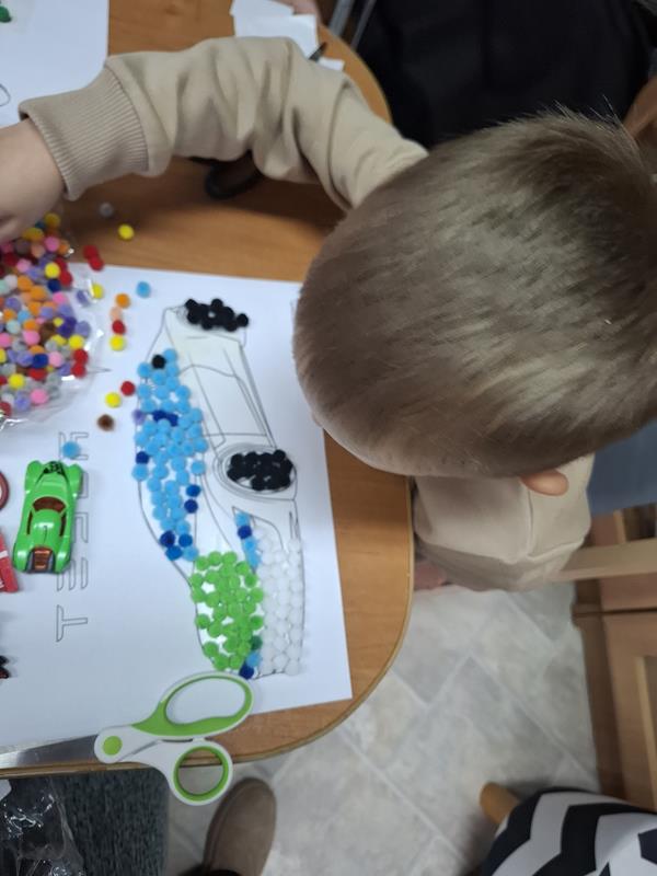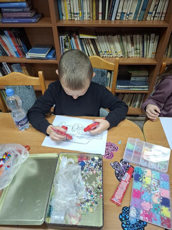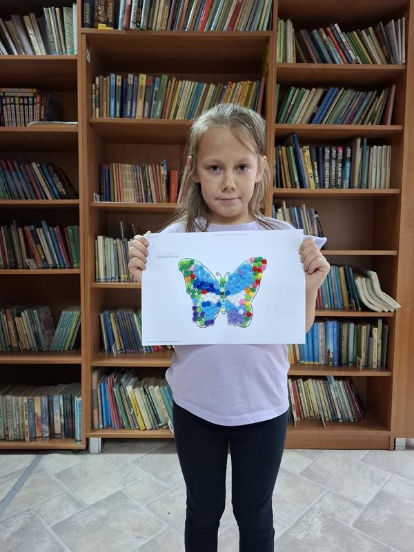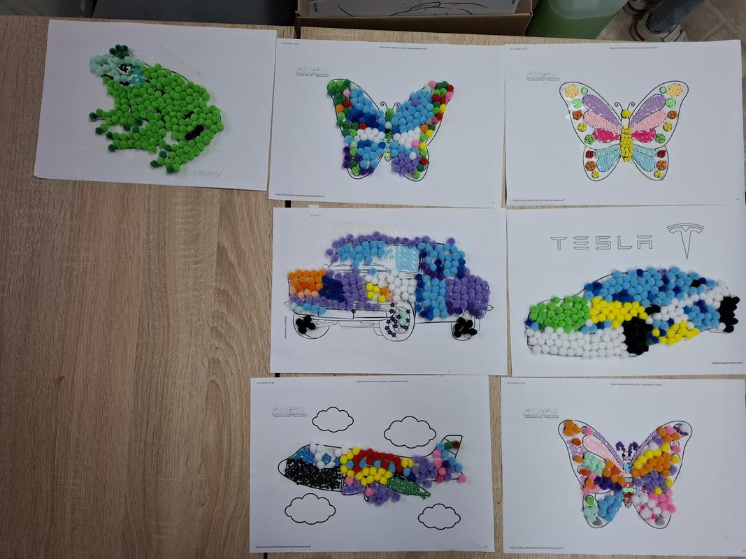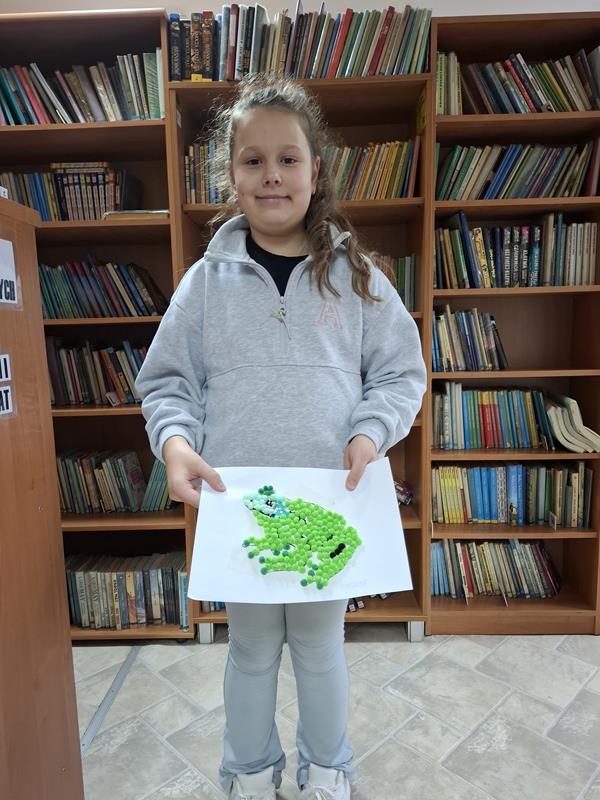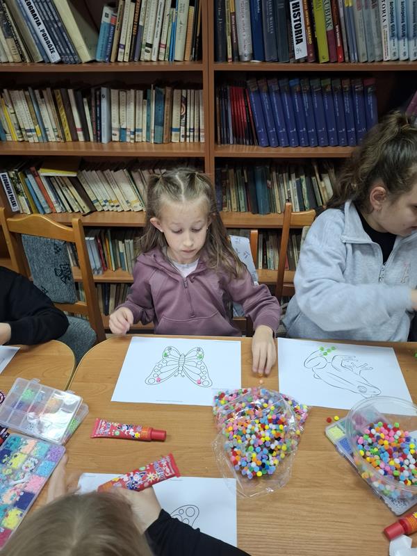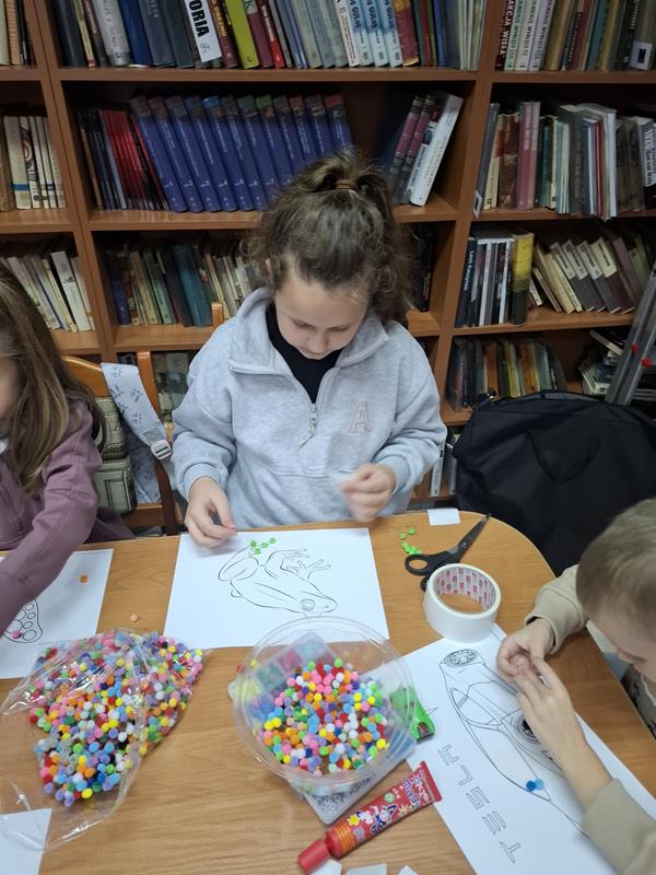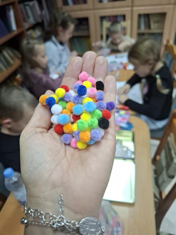 W ostatnich dniach w bibliotece odbyły się wyjątkowe zajęcia dla najmłodszych czytelników. Spotkanie połączyło twórczą pracę plastyczną, dobrą zabawę oraz kontakt z literaturą — czyli wszystko to, co dzieci lubią najbardziej.Pierwszą częścią zajęć były warsztaty zdobienia obrazów pomponikami .Dzieci z ogromnym zapałem tworzyły kolorowe kompozycje, wyklejając je miękkimi, barwnymi pomponami. Każdy obrazek był inny i jedyny w swoim rodzaju — od fantazyjnych zwierzątek, przez kolorowe pejzaże, aż po abstrakcyjne wzory. Kreatywność uczestników nie miała granic, a efekt końcowy zachwycił wszystkich.