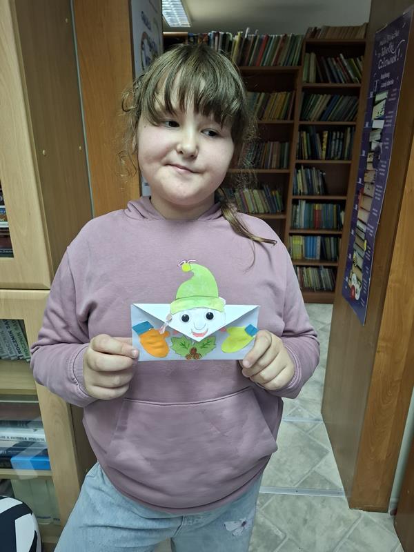 W bibliotece odbyły się kolejne, wyjątkowe zajęcia dla najmłodszych czytelników, tym razem w świątecznym klimacie. Dzieci wzięły udział w twórczych warsztatach oraz zabawie, która połączyła ruch, logiczne myślenie i oczywiście… książki.Pierwszą część zajęć stanowiło tworzenie listów do Świętego Mikołaja.Uczestnicy, korzystając z kolorowego papieru, markerów i ozdobnych elementów, tworzyli urocze koperty przypominające małe skrzaty – z brodatą buzią, czapką i świątecznymi detalami. W tych magicznych kopertach znajdą się listy nie tylko z marzeniami dzieci, lecz także opisem swoich starań jak byli być grzeczni przez cały rok.Po twórczej części nadszedł czas na ruch i wspólną zabawę. Dzieci wzięły udział w bibliotecznej grze terenowej „Zaginiona Książka”. Ich zadaniem było odnalezienie ukrytej książki, kierując się wskazówkami rozmieszczonymi między regałami. Gra dostarczyła uczestnikom mnóstwo śmiechu, emocji i zdrowej rywalizacji.Na zakończenie spotkania dzieci oglądały wybrane książki, rozmawiały o ulubionych świątecznych opowieściach i chętnie wypożyczały tytuły do domu.