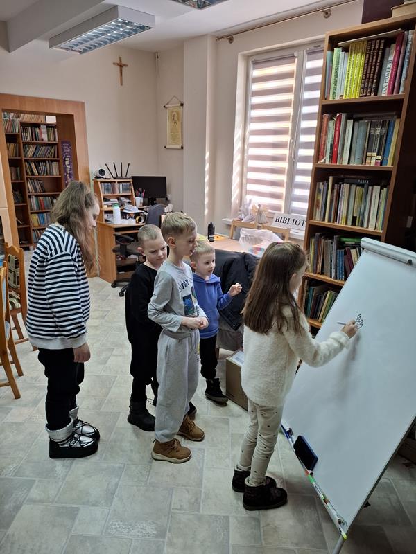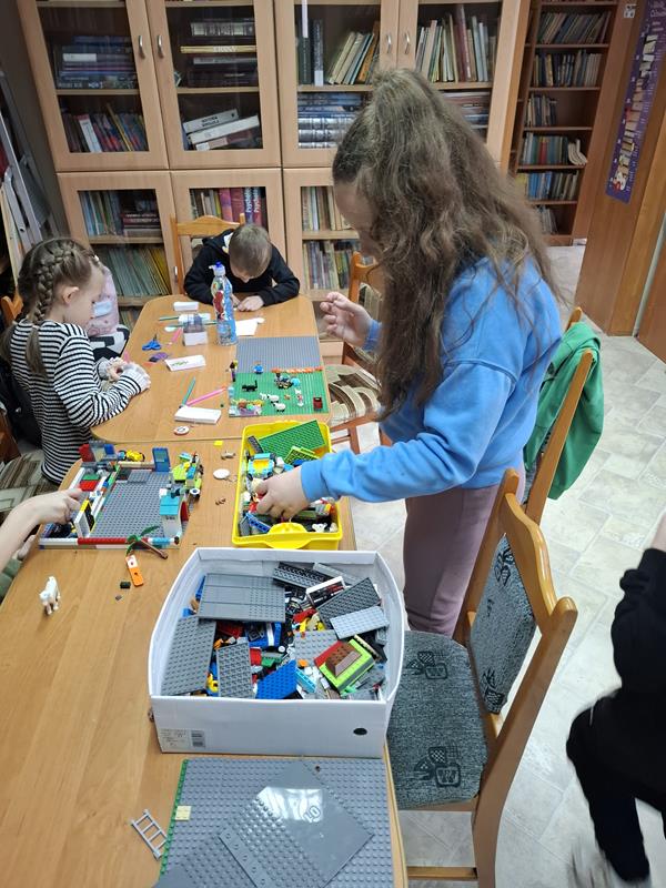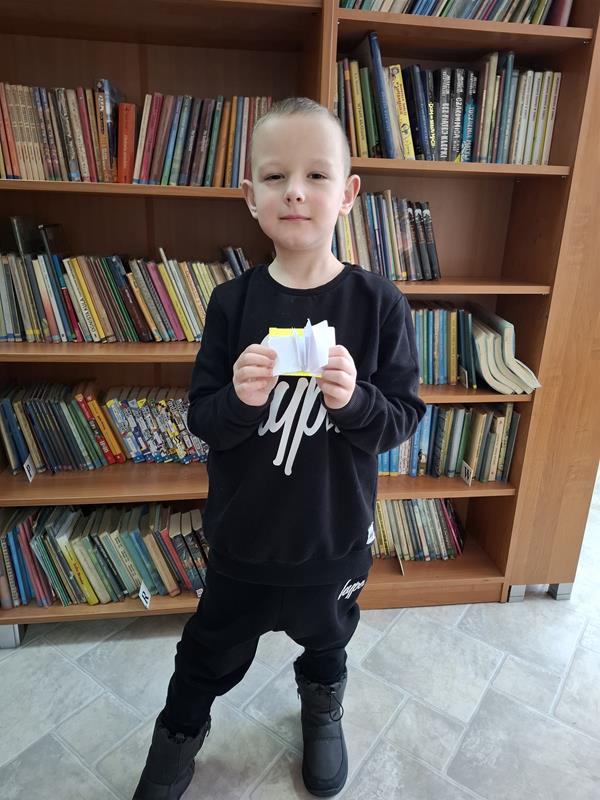 Nie zabrakło także zabaw integracyjnych. Kalambury dostarczyły mnóstwo śmiechu, a zabawa w „szukanie książki” zamieniła bibliotekę w miejsce pełne tajemnic i zagadek. Dzieci z entuzjazmem rozwiązywały wskazówki i współpracowały w zespołach, ucząc się przy tym logicznego myślenia i działania w grupie.