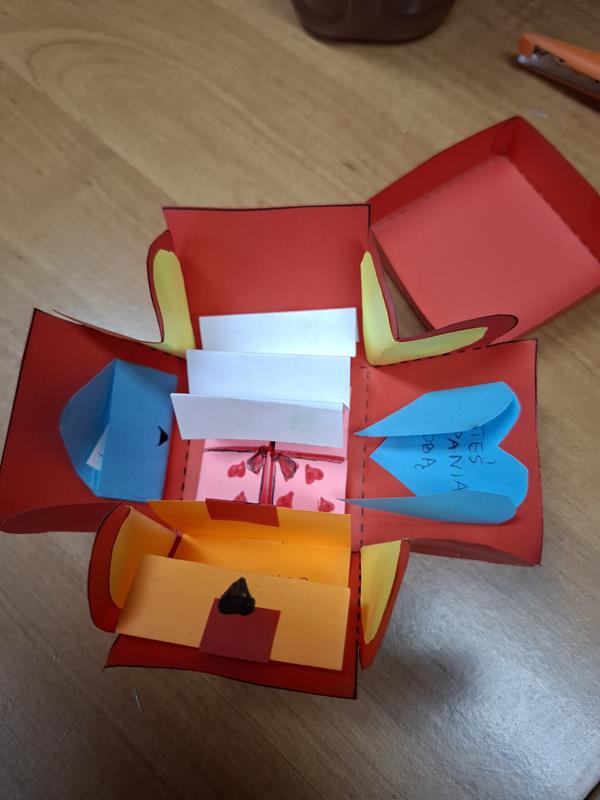 Dużym zainteresowaniem cieszyło się również wykonywanie „pudełka niespodzianki”. Każde dziecko mogło ozdobić swoje pudełko według własnego pomysłu, a następnie wypełnić je drobnymi upominkami lub karteczkami z miłymi hasłami. Kreatywność uczestników nie miała granic – pojawiły się brokatowe zdobienia, kolorowe naklejki i ręcznie rysowane wzory.