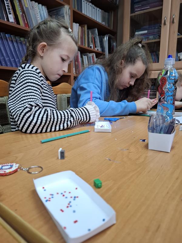 Podczas ferii nie zabrakło także tworzenia bryloczków. Dzieci projektowały i wykonywały je z małych kolorowych diamencików, dzięki czemu powstały wyjątkowe i niepowtarzalne pamiątki. Każdy mógł zabrać swój breloczek do domu jako wspomnienie wspólnie spędzonego czasu.